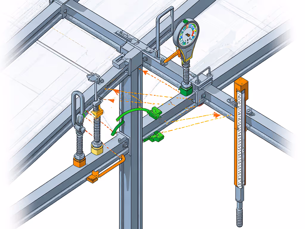 - Check for frame deflection >1/2" at span midpoints (use a laser level).