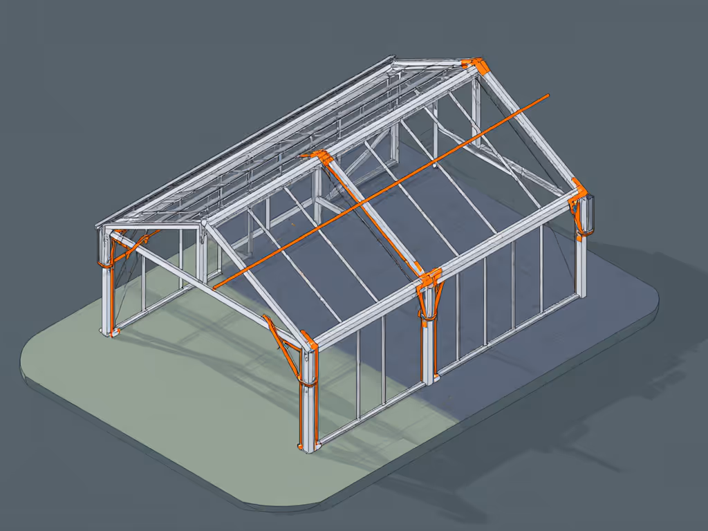 Failure Mode: Twisted hoops from lateral loads. Stock kits lack triangulation, so wind pushes columns inward until clips shear. Snow adds 30 lbs/ft^2 pressure on flat roofs, twice the design limit. If heavy snowfall is routine, compare verified snow load greenhouse kits before you buy.